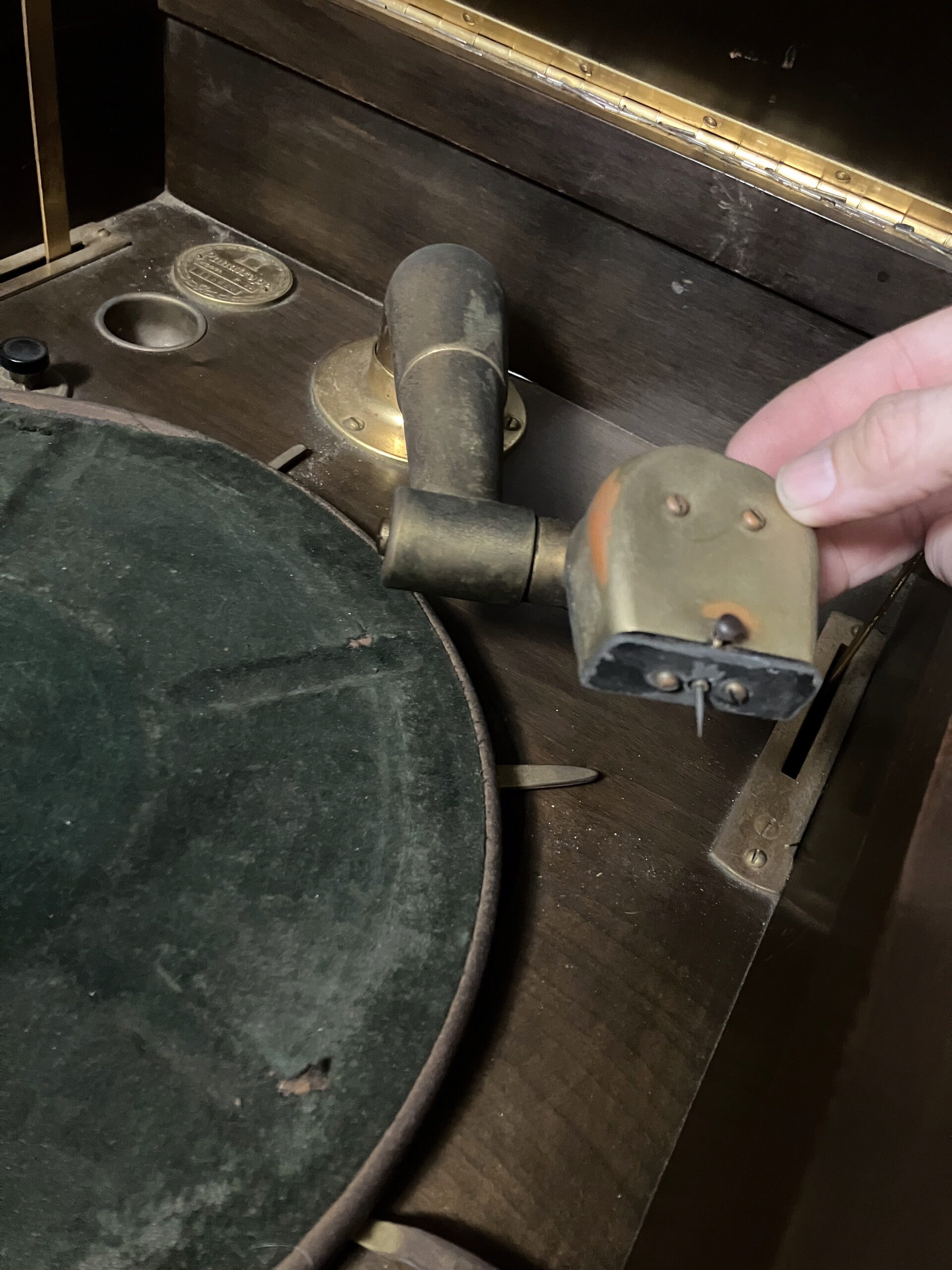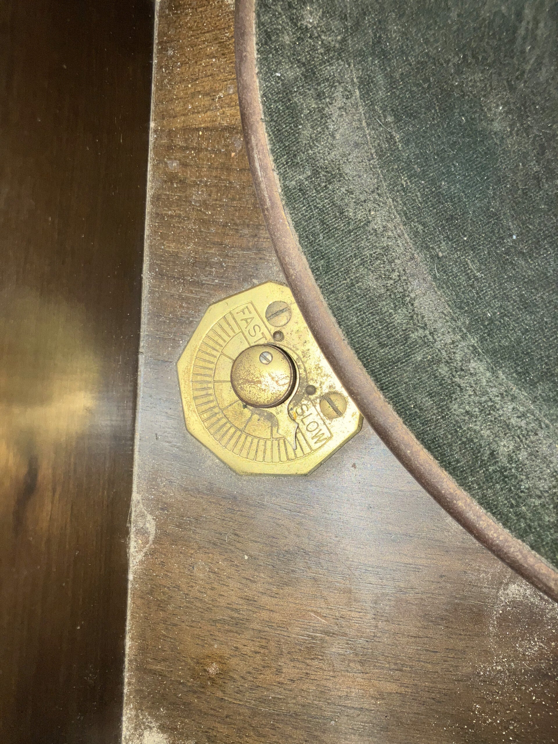The P-10 is equipped with Brunswick's electrodynamic pickup, a significant improvement over previous acoustic pickups.This technology allowed for clearer and more dynamic sound reproduction, enhancing the listening experience. The integration of a built-in speaker system further contributed to its superior audio performance.